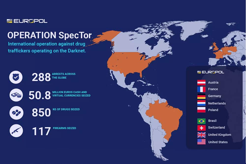In termini di arresti, l’operazione ha avuto ancora più successo delle precedenti operazioni con nome in codice Disruptor (2020) con 179 e Dark Hunter Tor (2021) con 150 arresti. Mostra ancora una volta che la collaborazione internazionale tra le autorità di polizia è fondamentale per combattere la criminalità nel Dark Web.