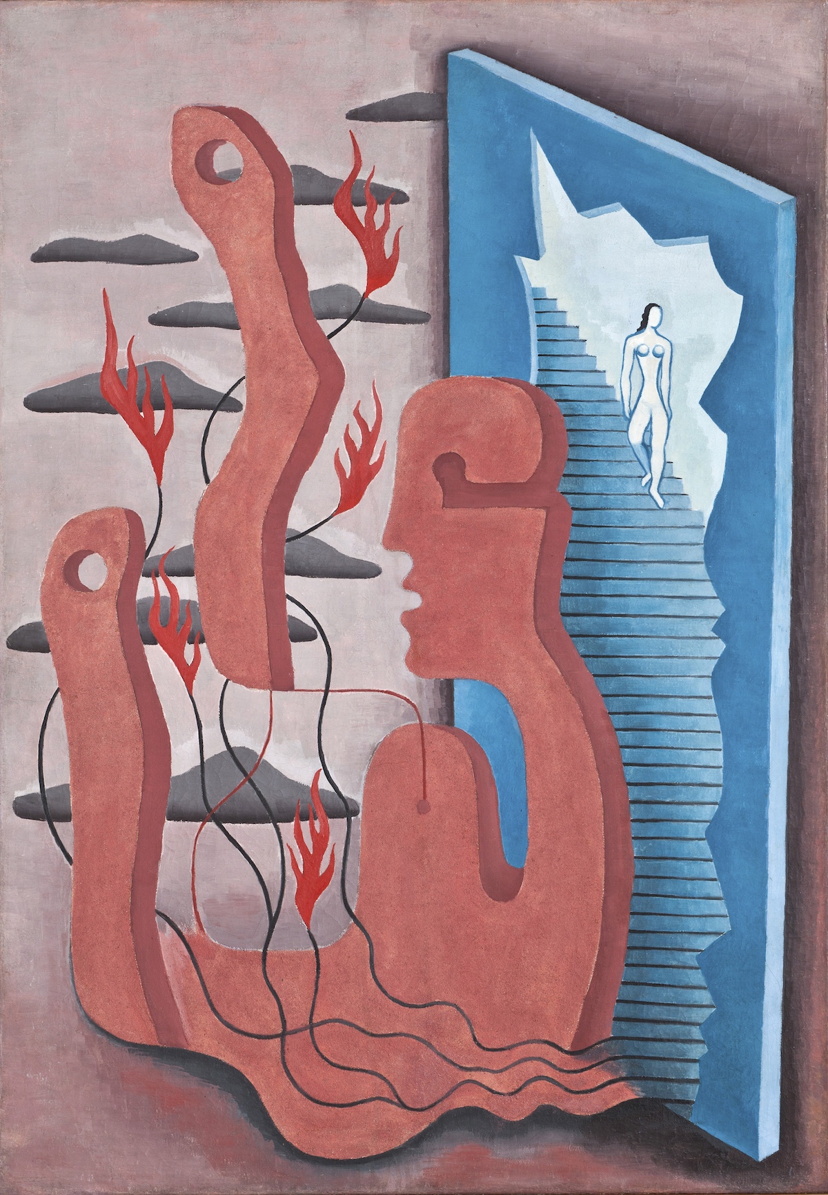 Centrale, nella mostra, è anche la dimensione umana e relazionale di quegli anni: Duchamp come consigliere, Beckett e Herbert Read come frequentatori, Arp e Tanguy come ospiti nel cottage di campagna dove Guggenheim continuava ad abitare. Fu Tanguy a creare per lei, proprio in quella casa, un paio di orecchini con due piccoli paesaggi surrealisti dipinti su conchiglia e oggi in mostra.